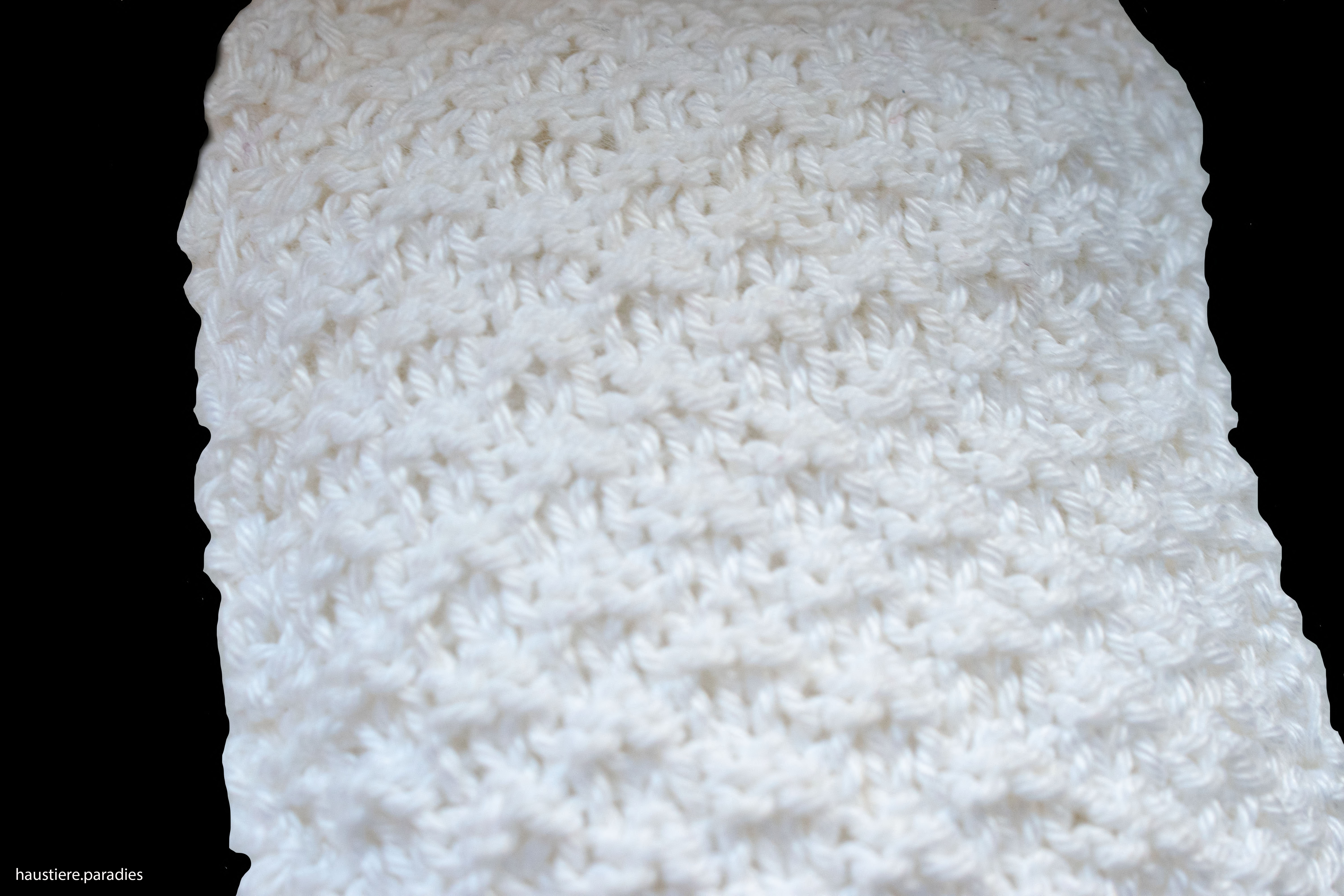 Das Kissen ist aus 100% Handarbeit hergestellt worden. Die Farbe von dem Spielkissen für Katzen ist weiß und hat ein Muster in Würfelform.
